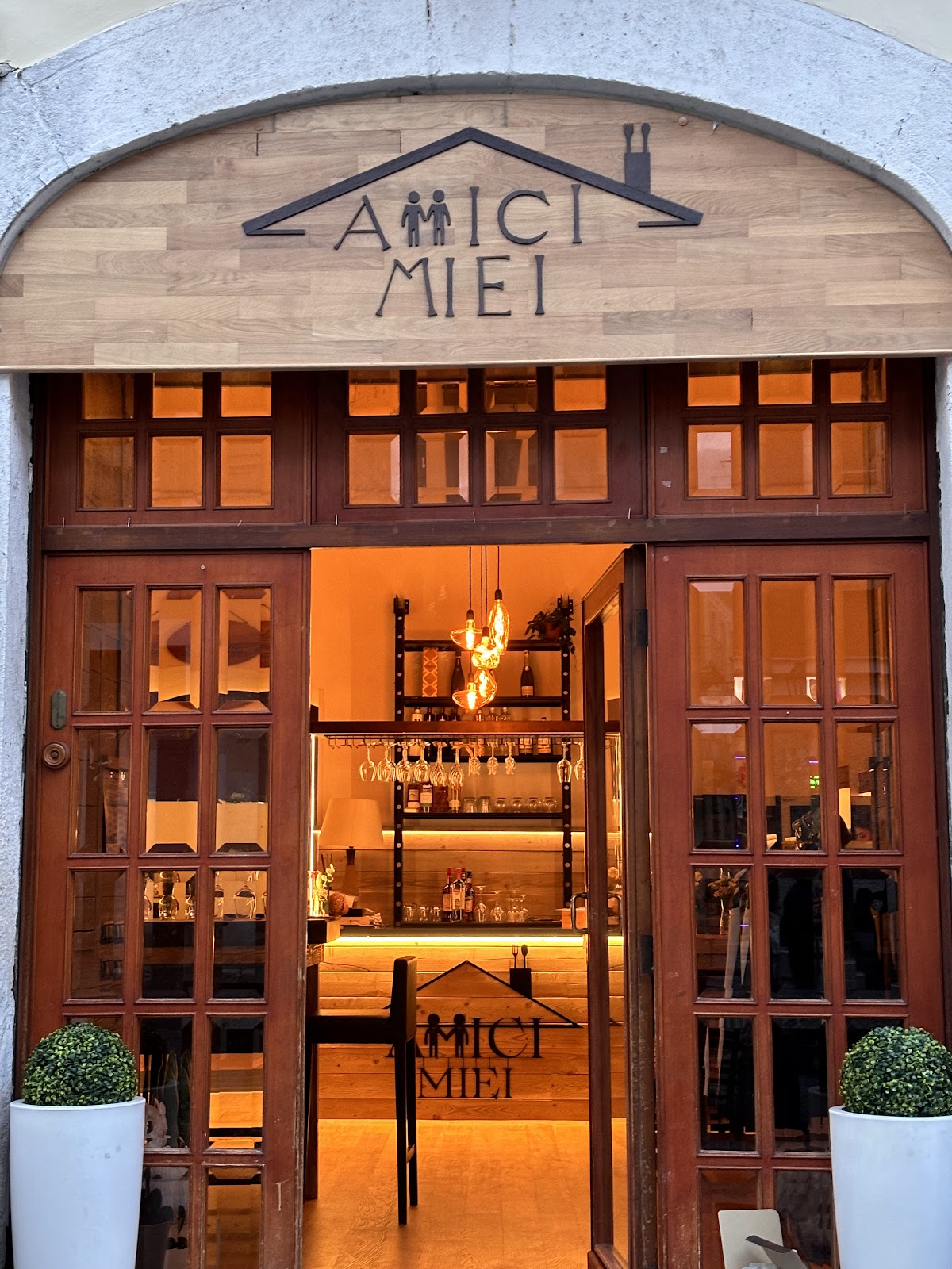 Amici Miei is a wonderful spot that truly stands out! Nestled in a cozy square, it offers a welcoming atmosphere where you can relax and unwind. The ambiance is enhanced by delightful music t